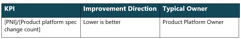 PNI is short for Part Number Introductions, it is the number of parts added to the ERP system in a year. By comparing the PNI with the number of added SKUs in a year we get an average of how many parts we need to add to introduce a new SKU. For configuring/customizing companies it is better to track changes in the platform specification. If we add a new specification for some property, it is a change to we want to accommodate with as few part number introductions as possible.