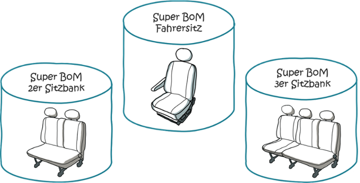 Im Bestreben diese Komplexität handhaben zu können, nutzen Unternehmen mehrere Super BoMs gleichzeitig, die jeweils einen Teil der gesamten Produktvariantenvielfalt abdecken. Diese Super BoMs stellen dann eigenständige Konfiguratoren mit individuellen Regelwerken dar. Während dies die Komplexität einer einzelnen Struktur reduziert, nimmt der Gesamtaufwand zum Erstellen und Instandhalten dieser Strukturen stark zu.