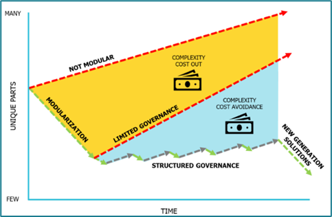 これまでの考察では、標準化・モジュラー化された製品構成要素が管理されない場合、設計・調達・製造・在庫・品質・経営の各部門で複雑性が増し、結果として間接費や販管費が増加し、経常利益を圧迫するという実態が明らかになりました。