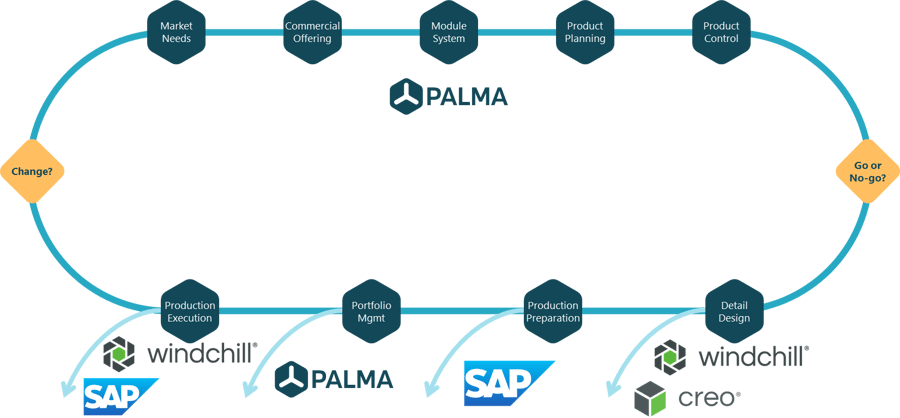 Integrated product lifecycle loop, PALMA connects market needs to modular architecture, planning, and execution with